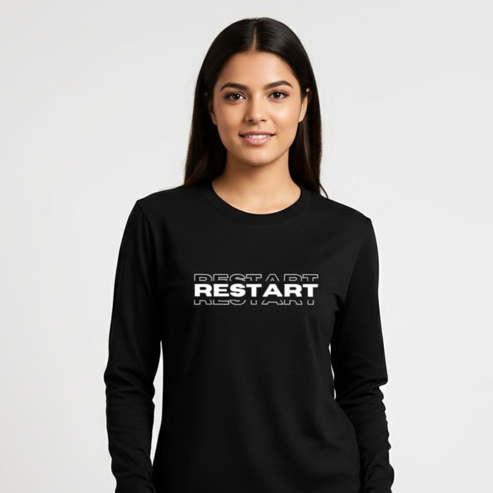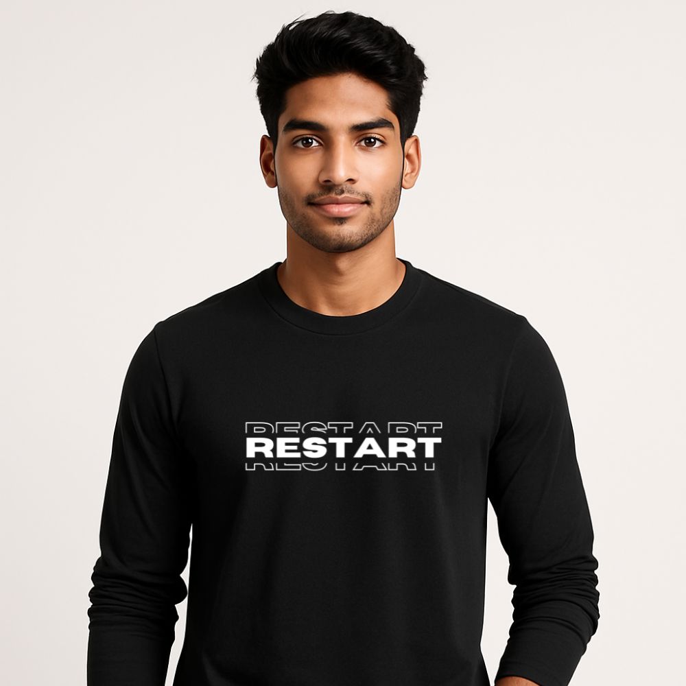 Premium Black “Restart” Full Sleeve T-Shirt – 100% Cotton