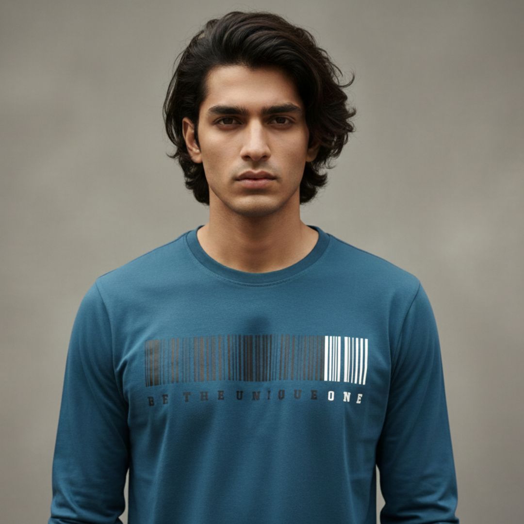 Indigo “Be the Unique One” Full Sleeve T-Shirt – 100% Cotton