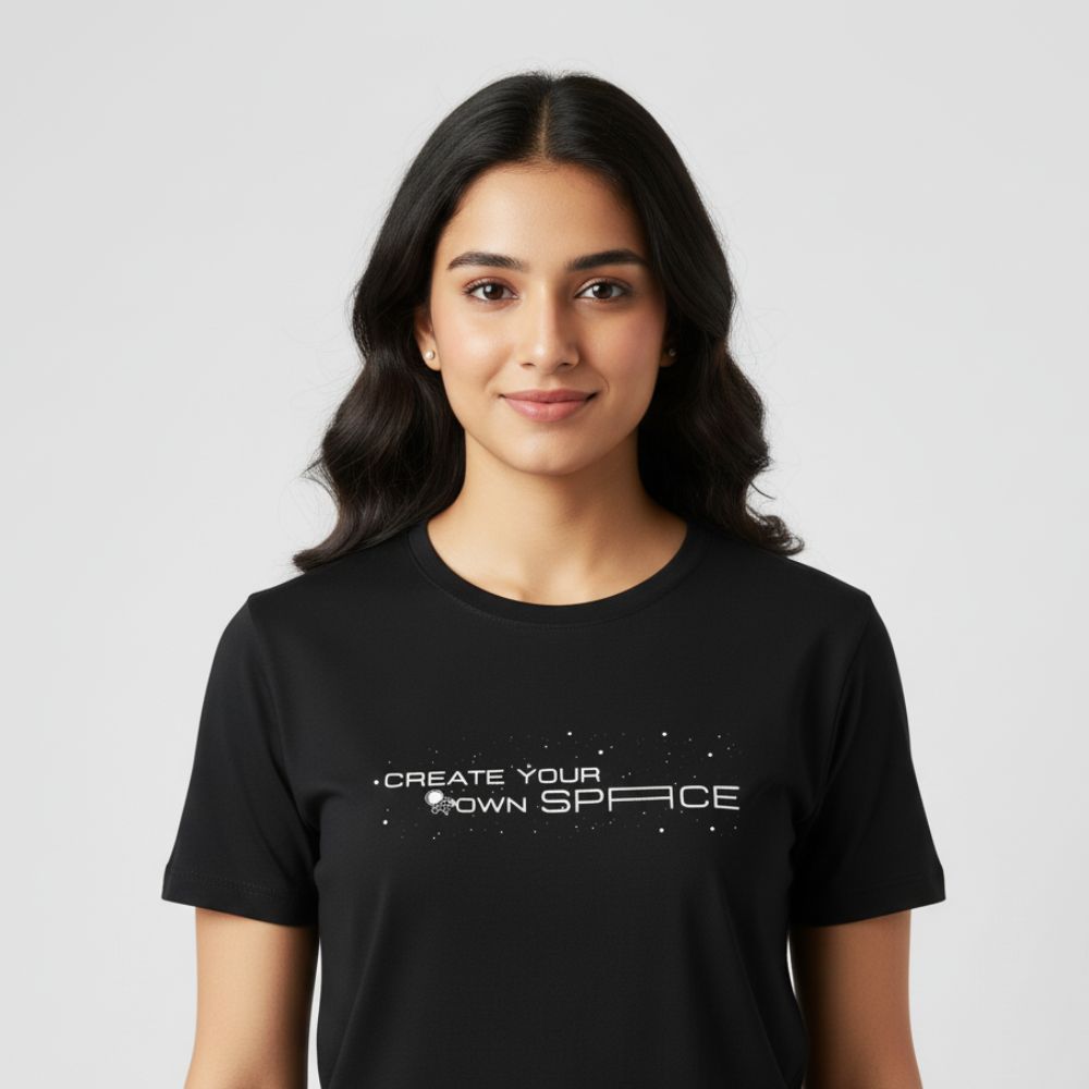"Create Your Own Space" Premium Round Neck Black Cotton T-Shirt - Soft, Classy, and Comfortable