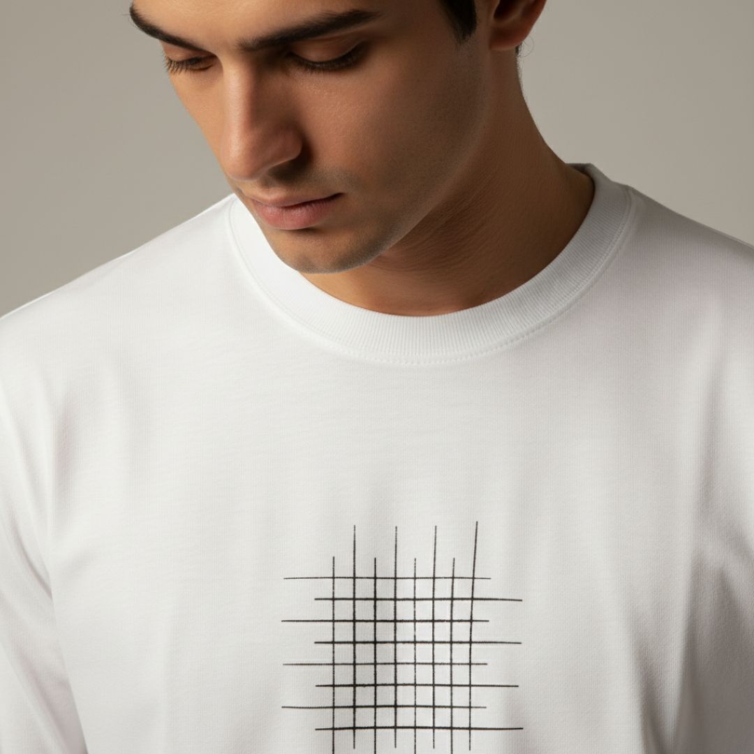 White Full Sleeve T-Shirt – 100% Cotton - Grid Hash Chest Design