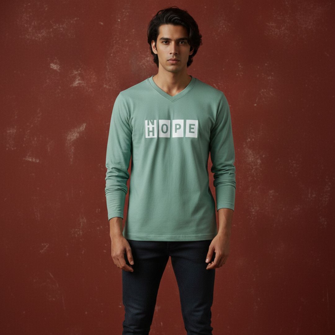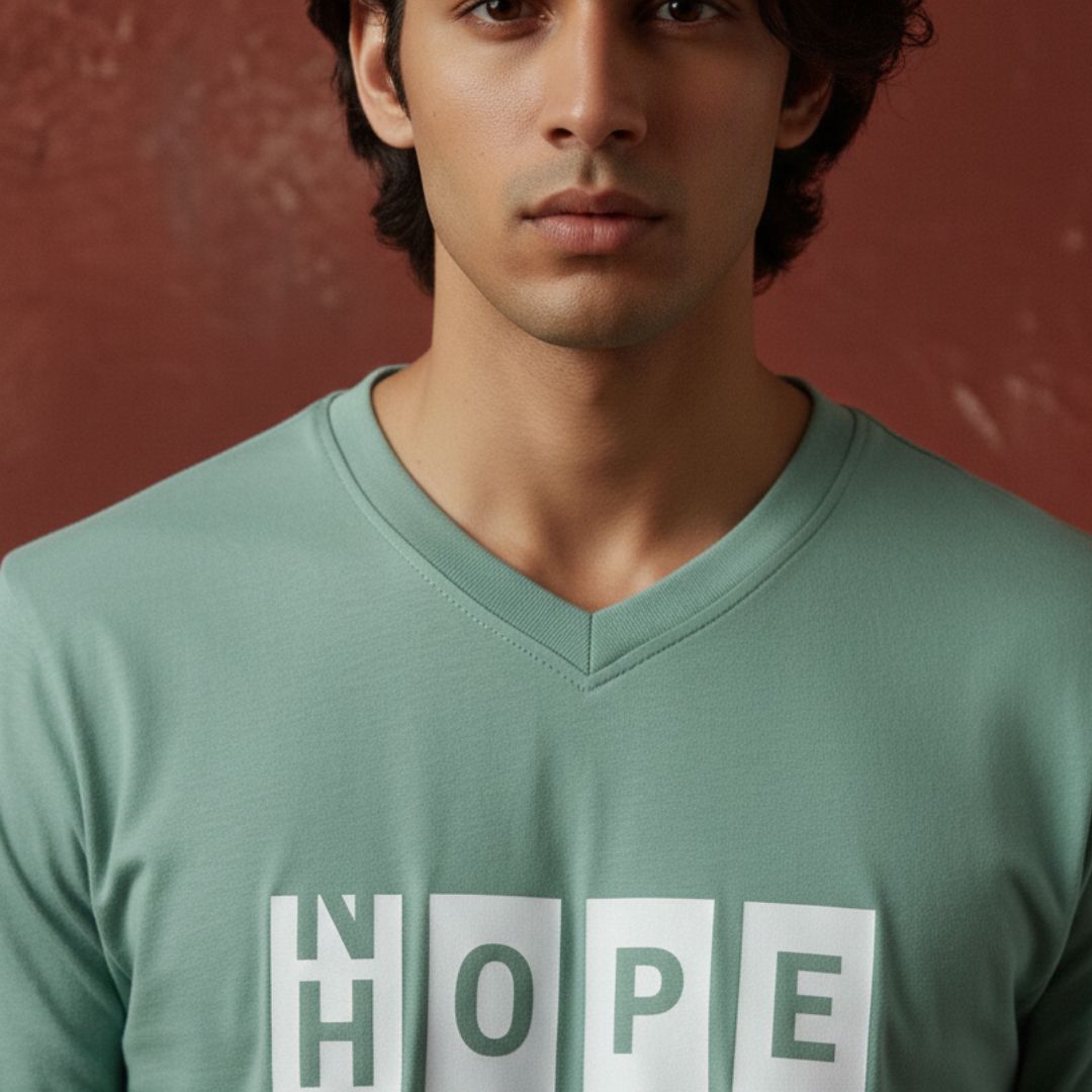 Pistachio Green HOPE T-Shirt – Premium Cotton V-Neck for Comfort & Style