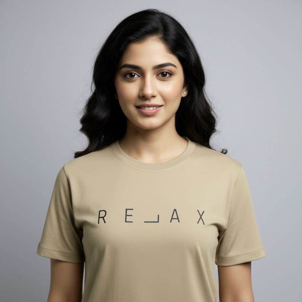 Beige “RELAX” Half Sleeve T-Shirt – 100% Cotton